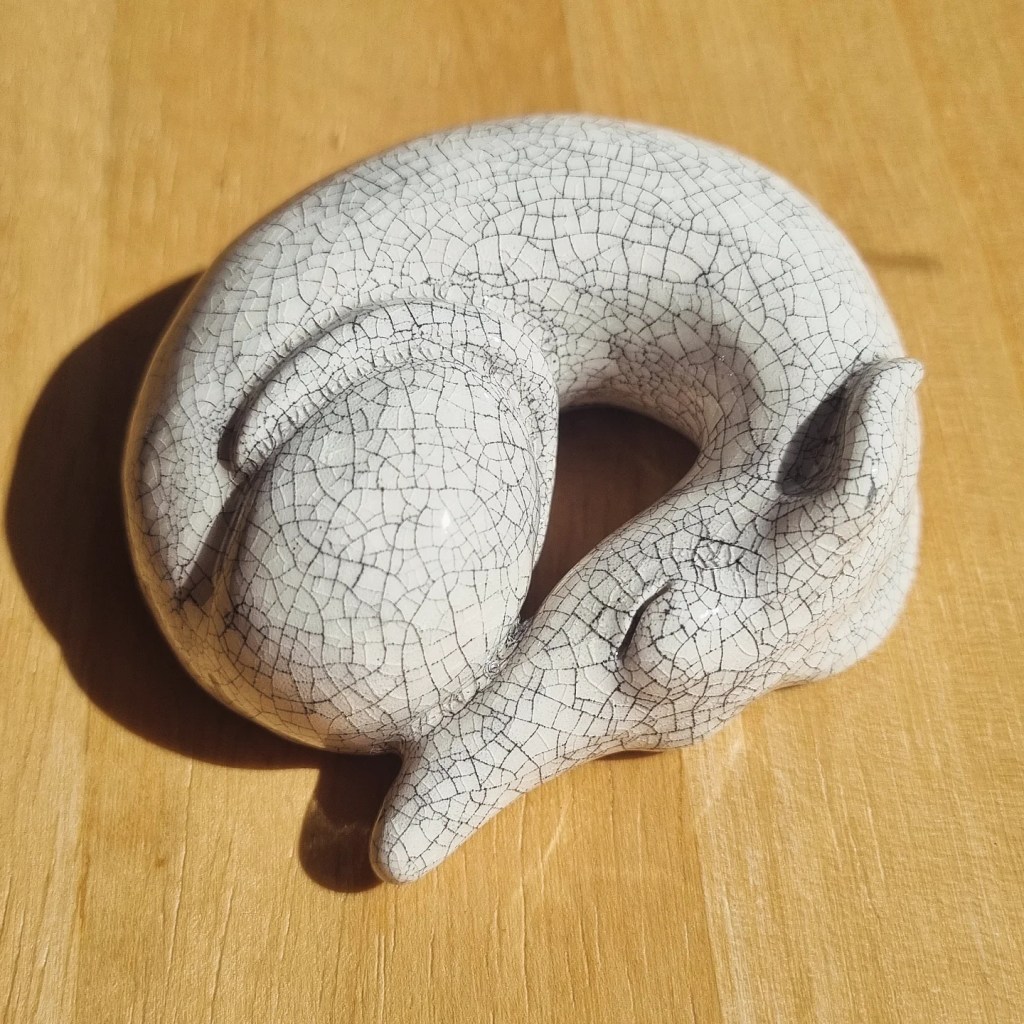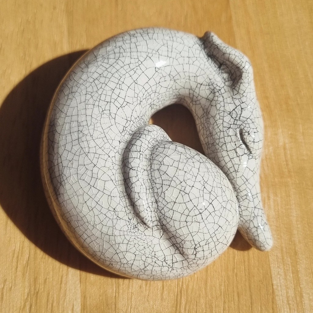 Sleeping Whippet, ceramic, crackle glaze, ink. 4x5xm. Out of Stock