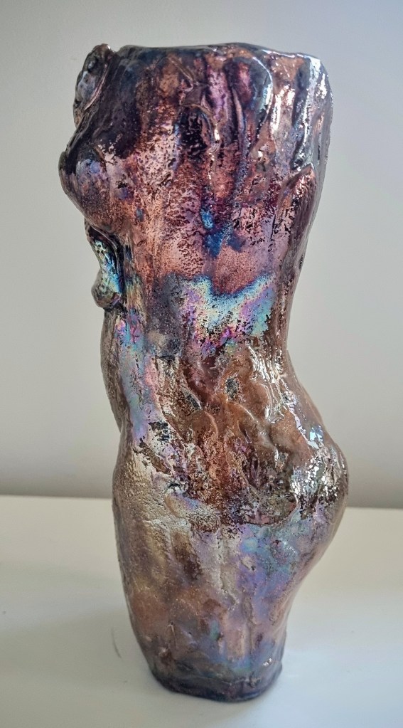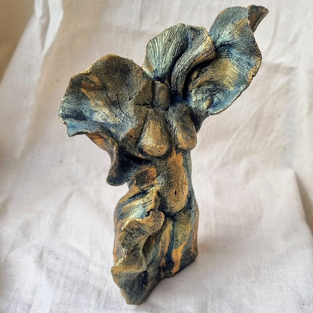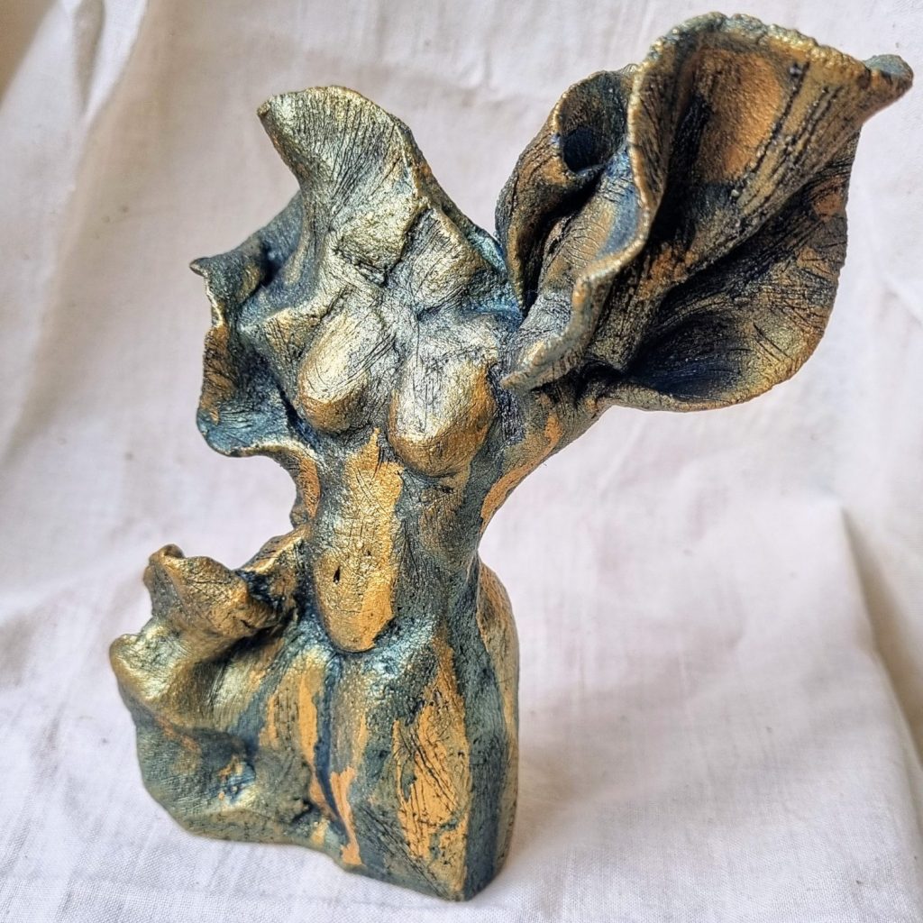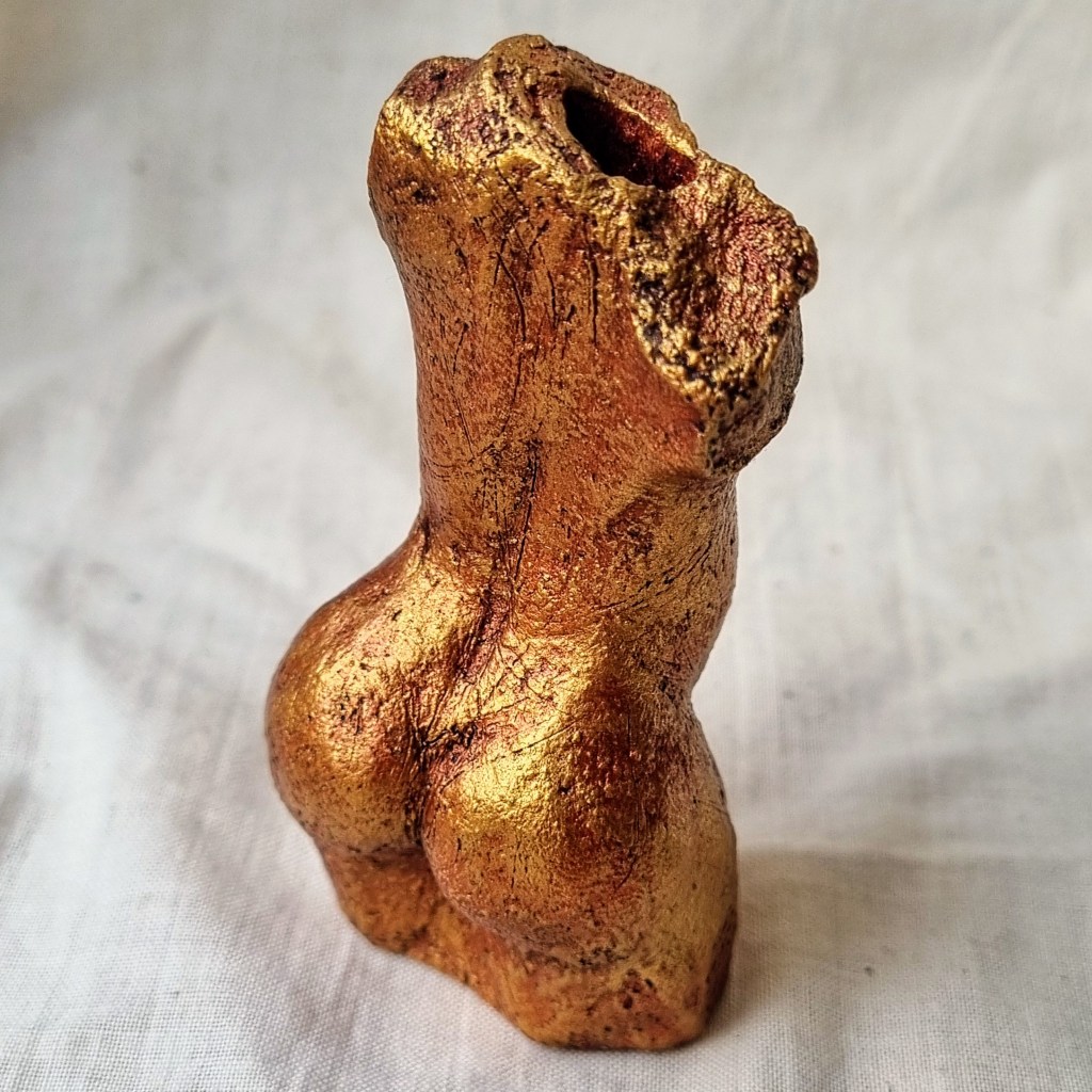 Nude Figures, Mini decorative vessels, ceramic with cold finish metallic acrylics and beeswax polish. Dry flowers only. Various sizes (see photo captions).