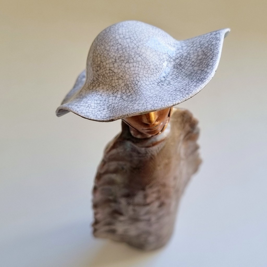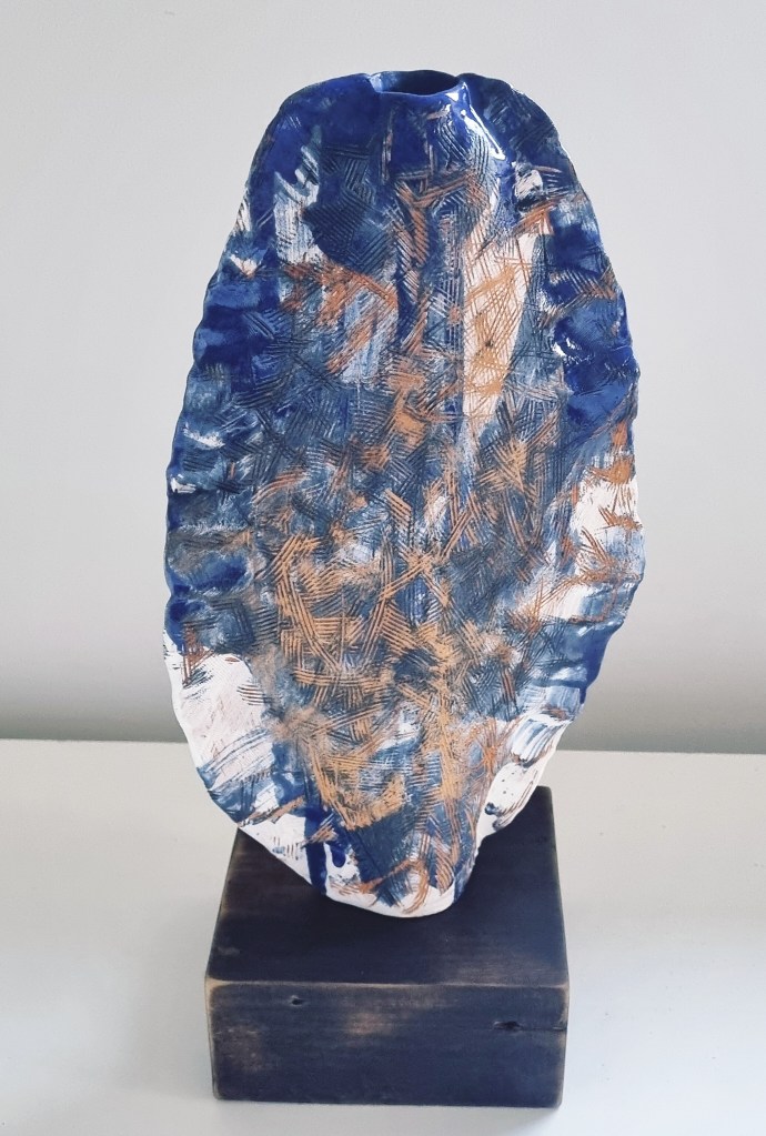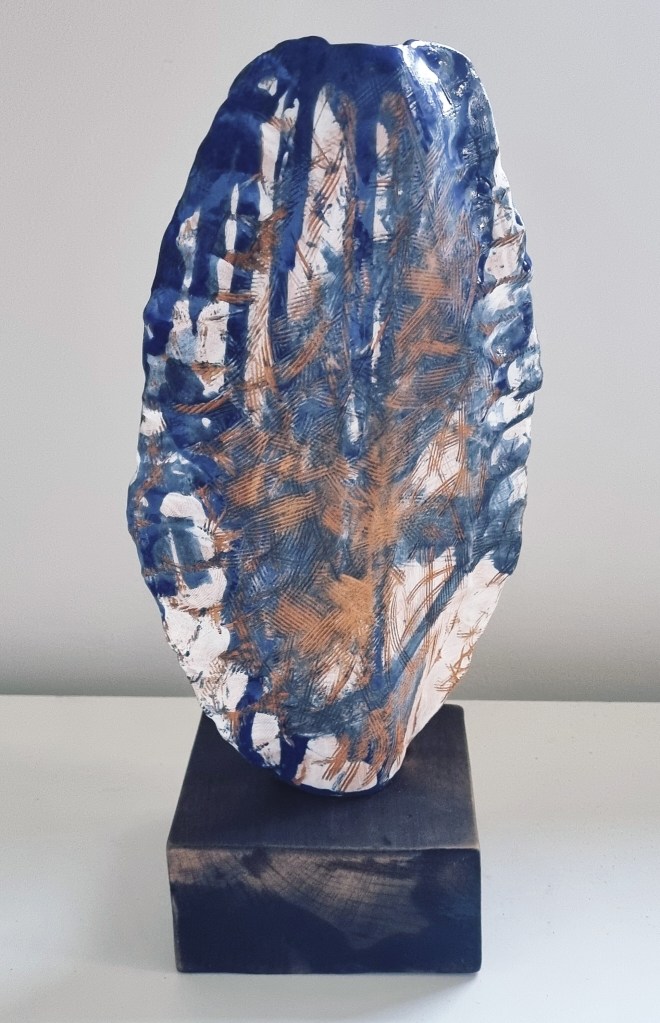 Sea Vessel (Large) with removable head stopper, ceramic, charred rimu stand. Forever Home Found