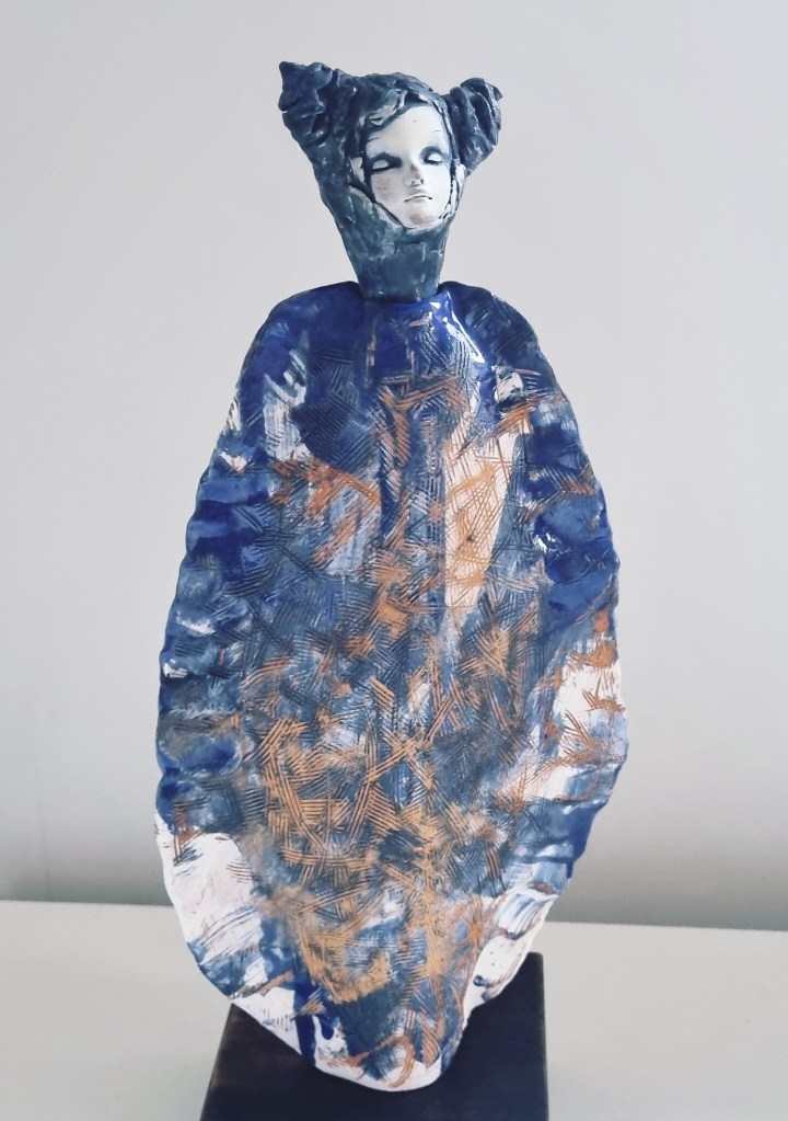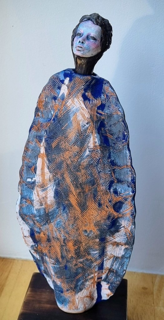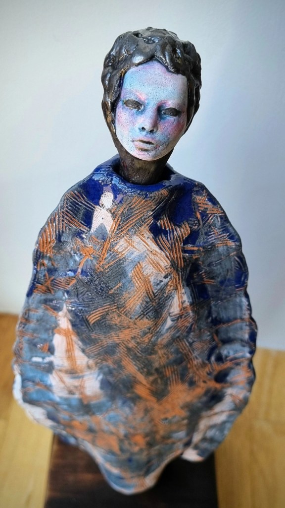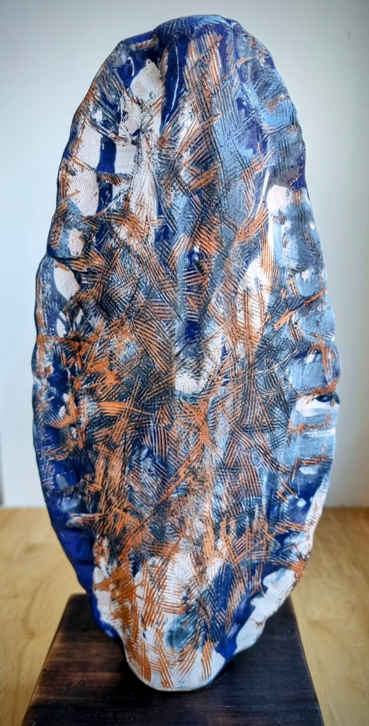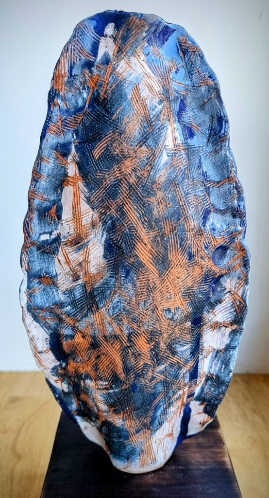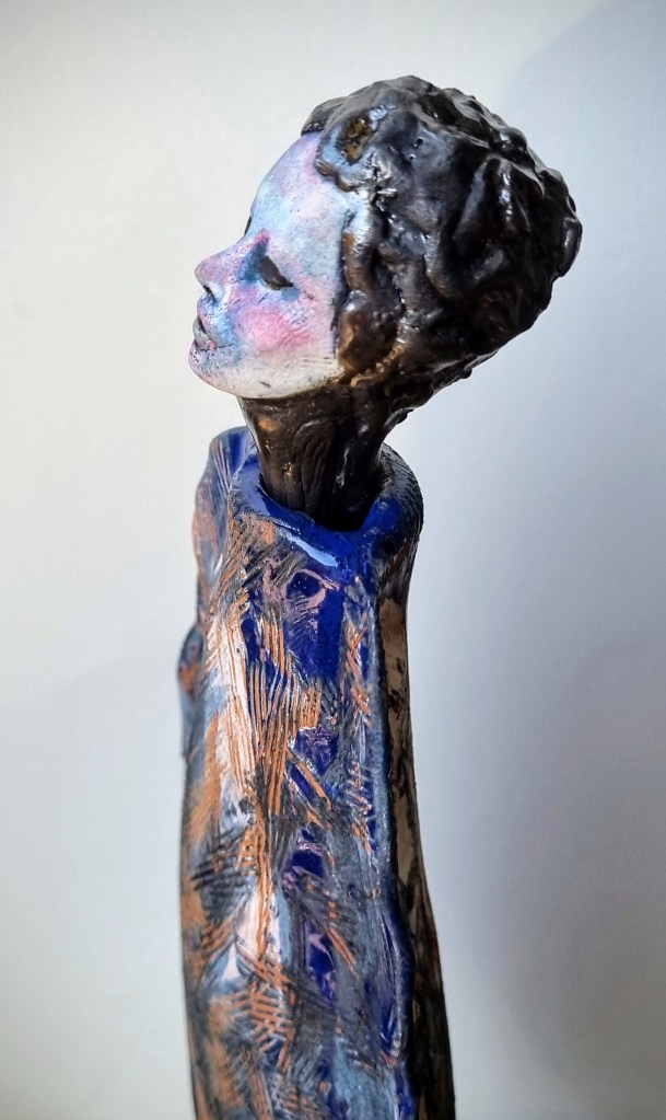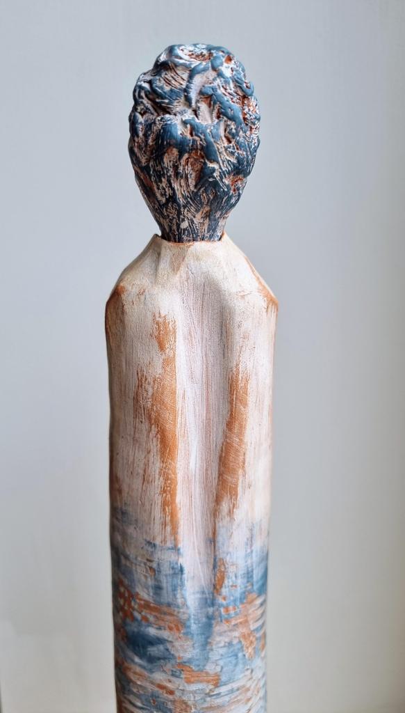 Coastal Guardian with removable head stopper, ceramic, cobalt oxide, beeswax polish. 30.5×4.5xm. $180