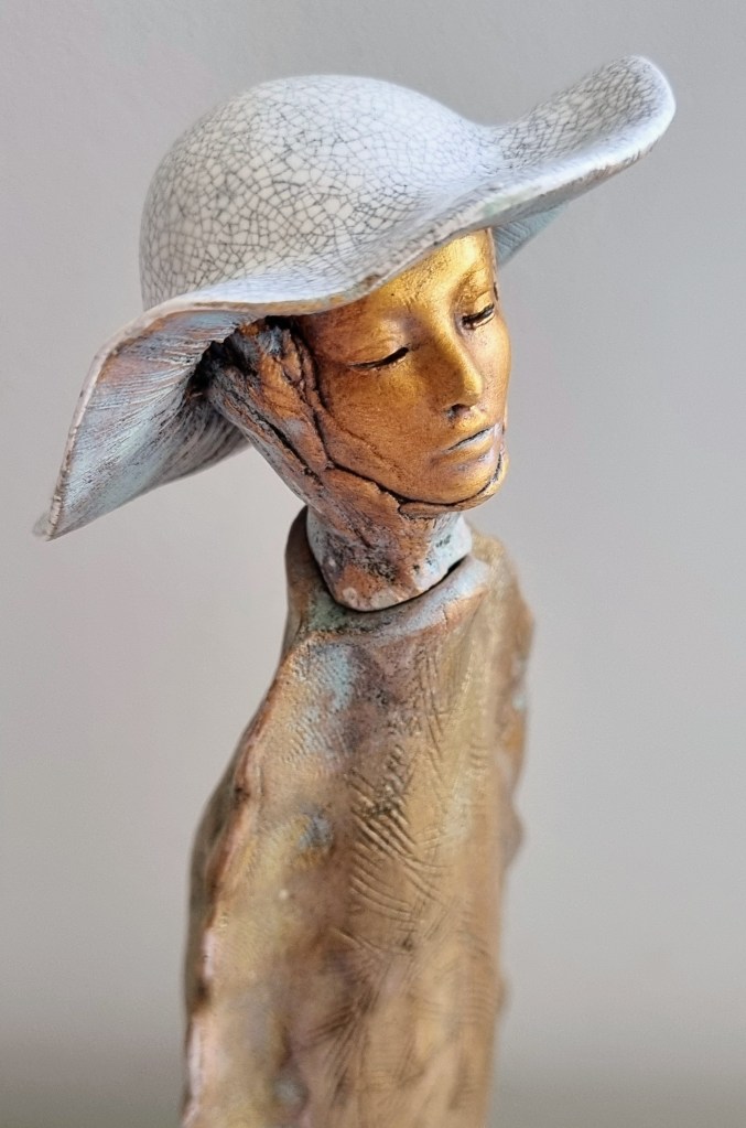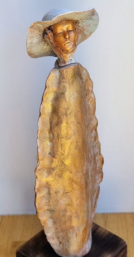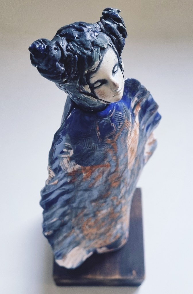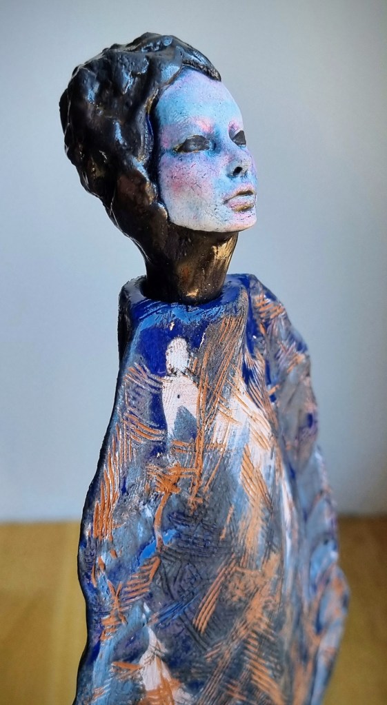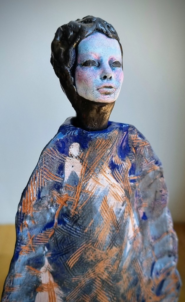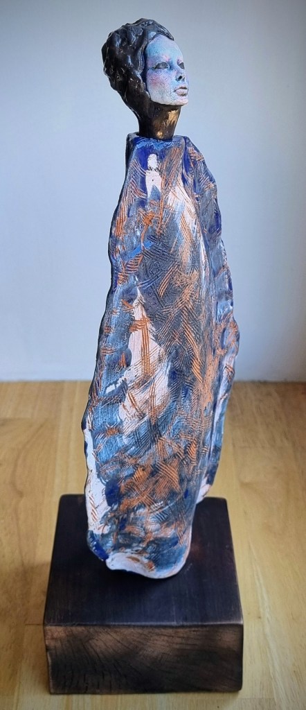 Coastal Guardian with removable head stopper, ceramic, cobalt oxide, beeswax polish. 30.5×4.5xm. $180